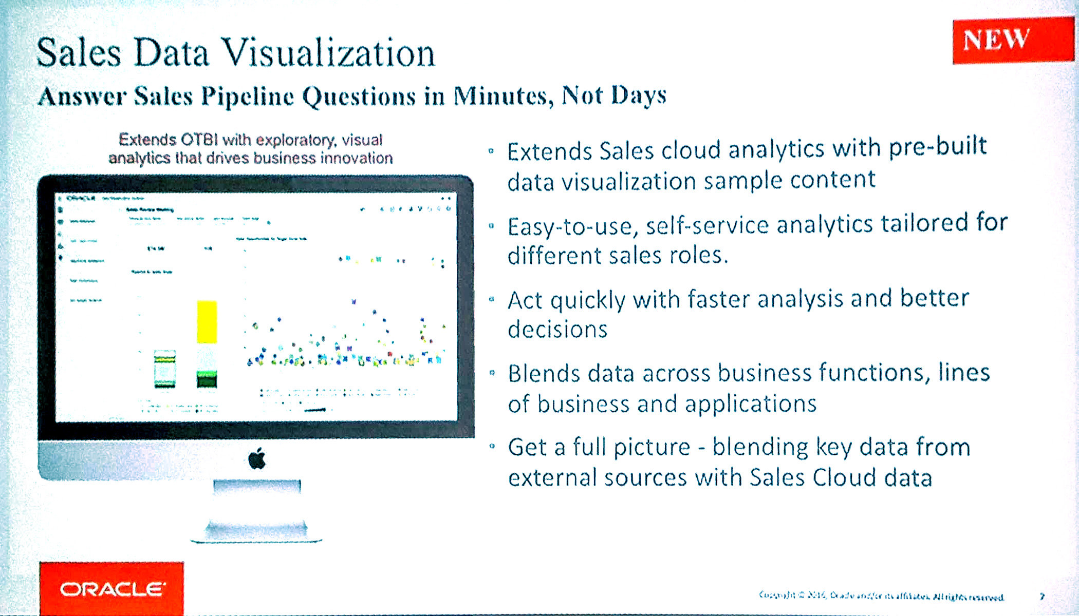 We believe our clients don't feel that way, potentially because reporting is one area where we usually spend considerable time with them and user adoption is always at the forefront of our project objectives: we believe this to be key for a successful deployment. However, richer visualisation and analytics tools are also coming with R12 and this will make it easier for sales admins to embed analytics content and build dashboards into the Oracle Sales Cloud homepage.