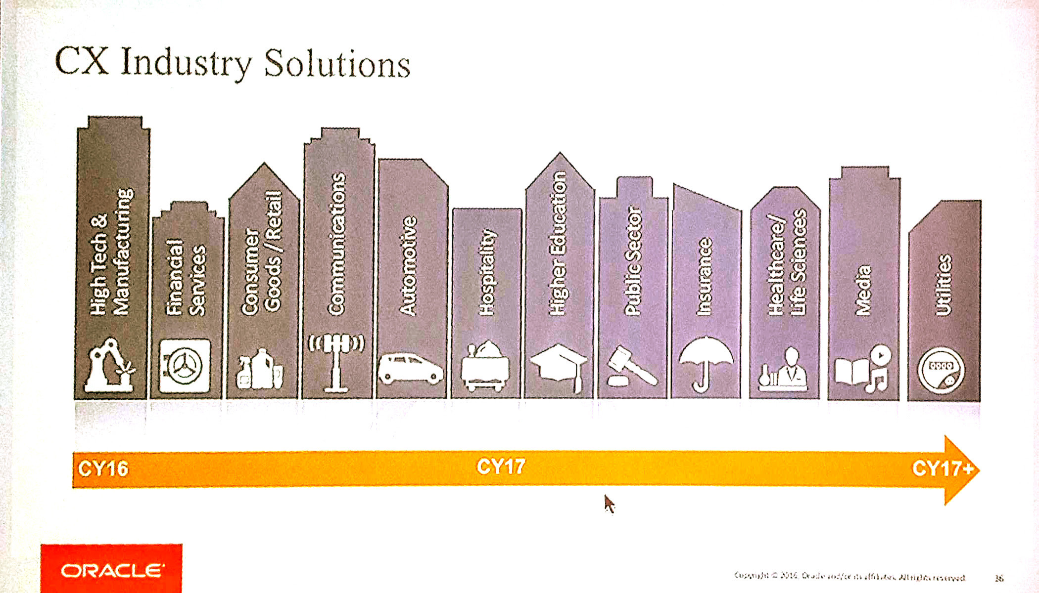 Oracle are continuing to invest in developing industry-specific solutions for Sales Cloud. These include additional objects and flows that are designed to cater to use cases specific to each industry, and may include additional products, such as Oracle Policy Automation for needs analysis in Finance, just to name one example. Here are a few more: